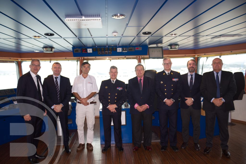 This visit marks Boluda’s first strategic approach to the vessel after the integration of Les Abeilles International into Boluda Towage in June 2024. During the visit, the delegation was joined by the Maritime Prefect of the Mediterranean, Vice Admiral Christophe Lucas, and Jean-Emmanuel Perrin, General Commissioner and Deputy to the Maritime Prefect. Together, they toured the impressive infrastructure of this tug, which operates 24/7, 365 days a year for towing and emergency response missions.